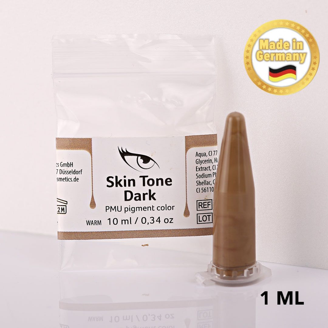 BeautyCase ®️ Skin Tone Dark è una buona base per il trattamento camouflage per la pelle scura. Possibile mescolare con i pigmenti più chiari o più caldi se necessario. Adatto anche per scurire i pigmenti camouflage per della pelle chiara. Può essere usato nel mix di pigmenti per il PMU areola.