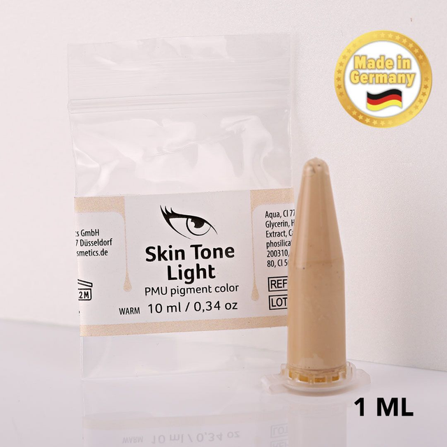 BeautyCase ®️ Skin Tone Light è molto popolare per la pelle chiara, europea e nordica. Molto usato per liplights. Se necessario, può essere miscelato con i pigmenti camouflage più chiari o più scuri. Adatto anche per definire l’effetto pelo a pelo sulle sopracciglia.